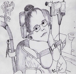 “Do you wanna peepee, Katie, it’ll take a while”, said the woman. The girl’s head constantly jerked about in a frenzied, panicky sort of manner. Her eyes blazing, she tried hard to hold their focus on the woman, as they rolled around. And all the while, her face twitched and her whole upper torso swayed back and forth.