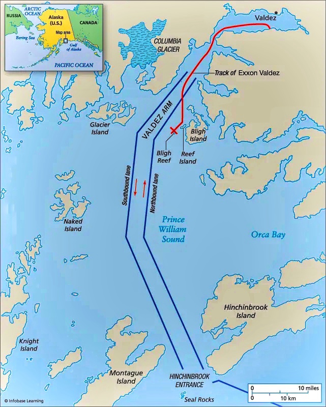 Three hours after departing the oil terminal, the Exxon Valdez cut right through the inbound lane and headed straight for Bligh Island Reef, where it ran aground, tearing a large ugly gash in the hull below the waterline and rupturing 8 of it’s 11 tanks.